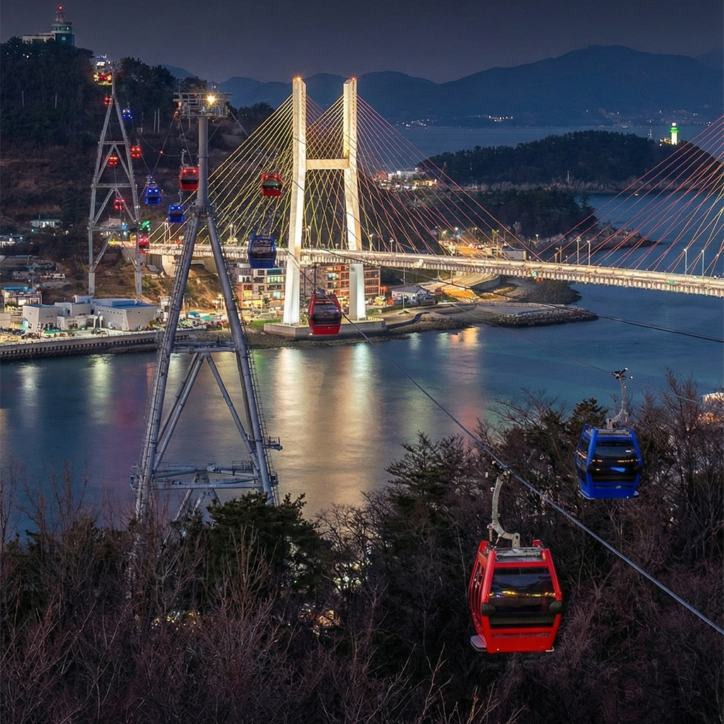 식사 전후로는 여수 해상케이블카 탑승을 추천합니다. 돌산공원과 자산공원을 잇는 케이블카에서 내려다보는 '여수 밤바다'의 화려한 야경은 그야말로 장관입니다. 반짝이는 돌산대교와 장군도, 그리고 여수항의 불빛이 어우러져 낭만적인 분위기를 극대화합니다.