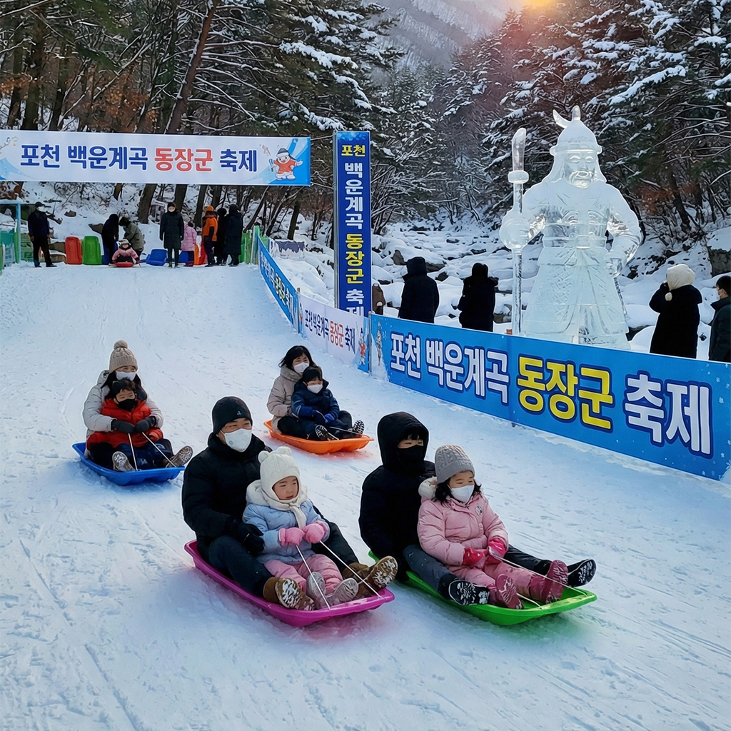 1. 포천 백운계곡 동장군 축제: 짜릿한 스릴과 미식의 향연