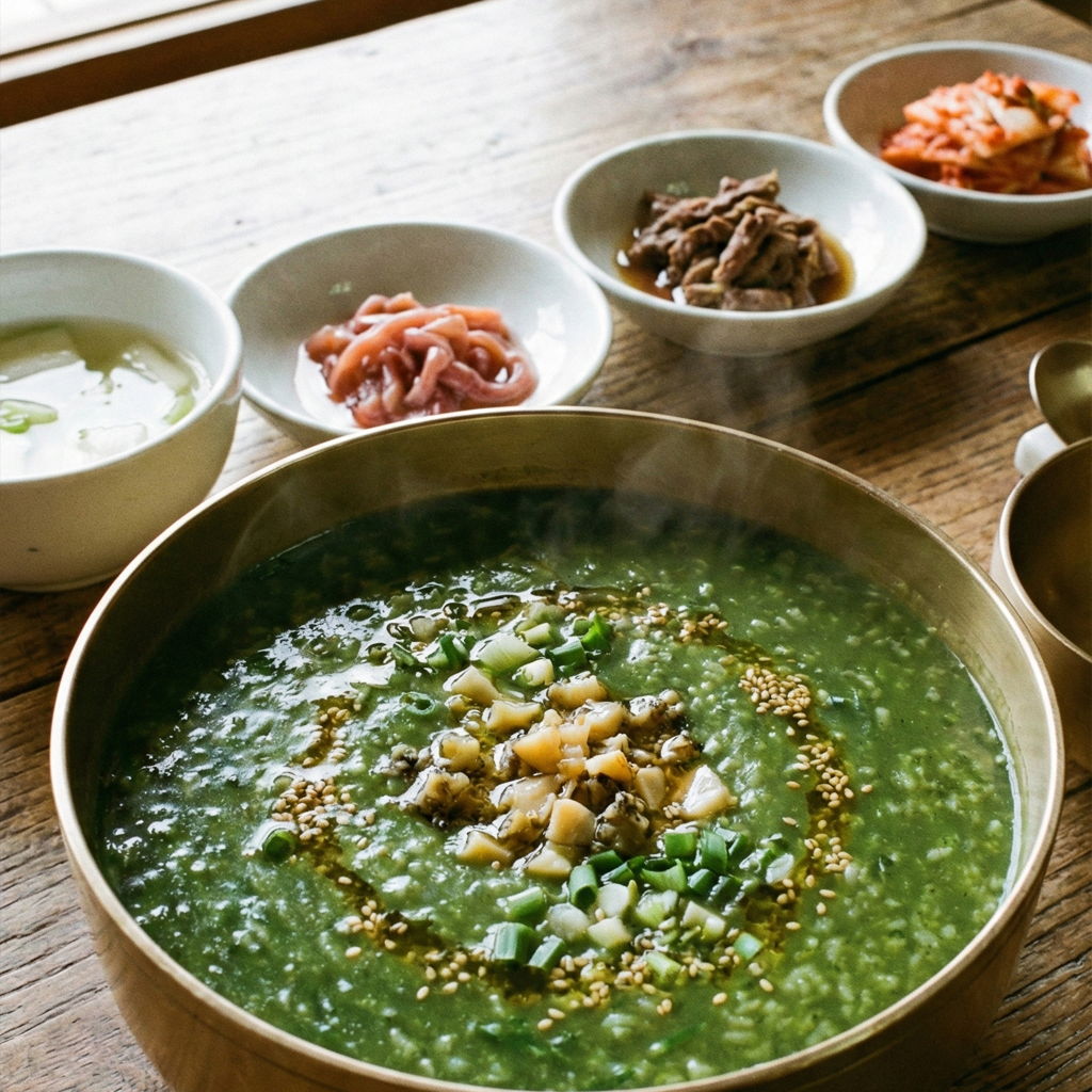 전복 내장을 아낌없이 넣어 진한 녹색 빛깔과 깊은 풍미가 일품입니다. 고소하고 든든한 전복죽 한 그릇은 여행의 만족도를 최상으로 끌어올립니다.