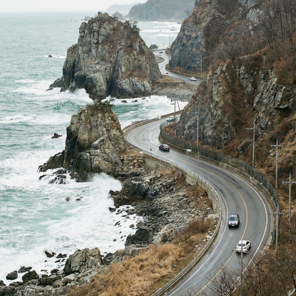 동해의 푸른 숨결을 가장 가까이서 느끼며, 속도 대신 '온도'로 기억될 여정을 원한다면 정답은 단 하나, '7번 국도'입니다.