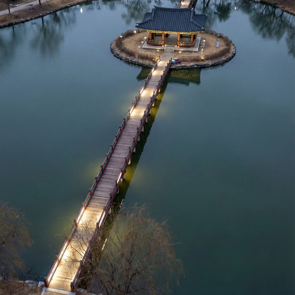 서동요의 전설이 깃든 이곳은 무왕이 조성한 우리나라 최초의 인공 연못으로 알려져 있습니다. 여름이면 화려한 연꽃으로 가득 차지만, 연꽃이 없는 계절의 궁남지는 또 다른 매력을 품고 있습니다.