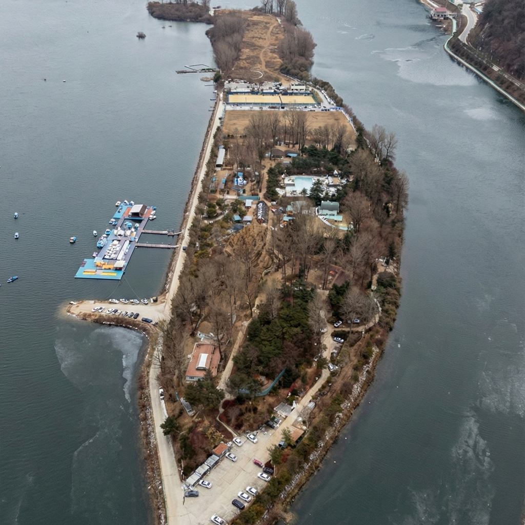 강원도 드라이브의 마지막 코스는 강 가운데 붕어 모양으로 떠 있는 붕어섬입니다. 섬 전체를 순환하는 자전거 길과 산책로가 잘 정비되어 있어 여유롭게 둘러보기 좋습니다.