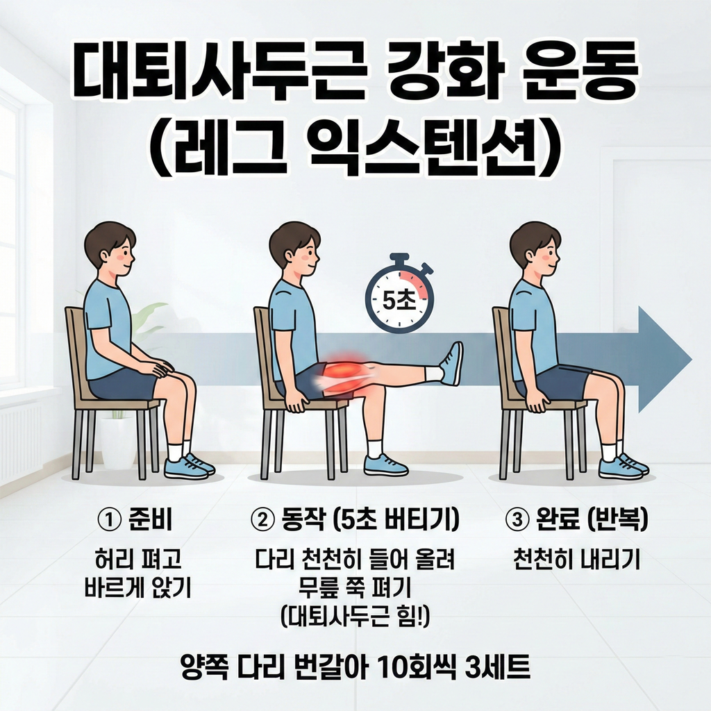 - 실천하세요: 하루 10분 대퇴사두근 강화 운동