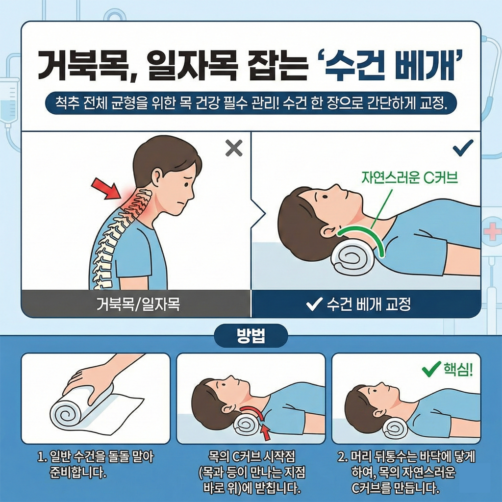 4. 보너스 팁: 거북목, 일자목 잡는 '수건 베개'