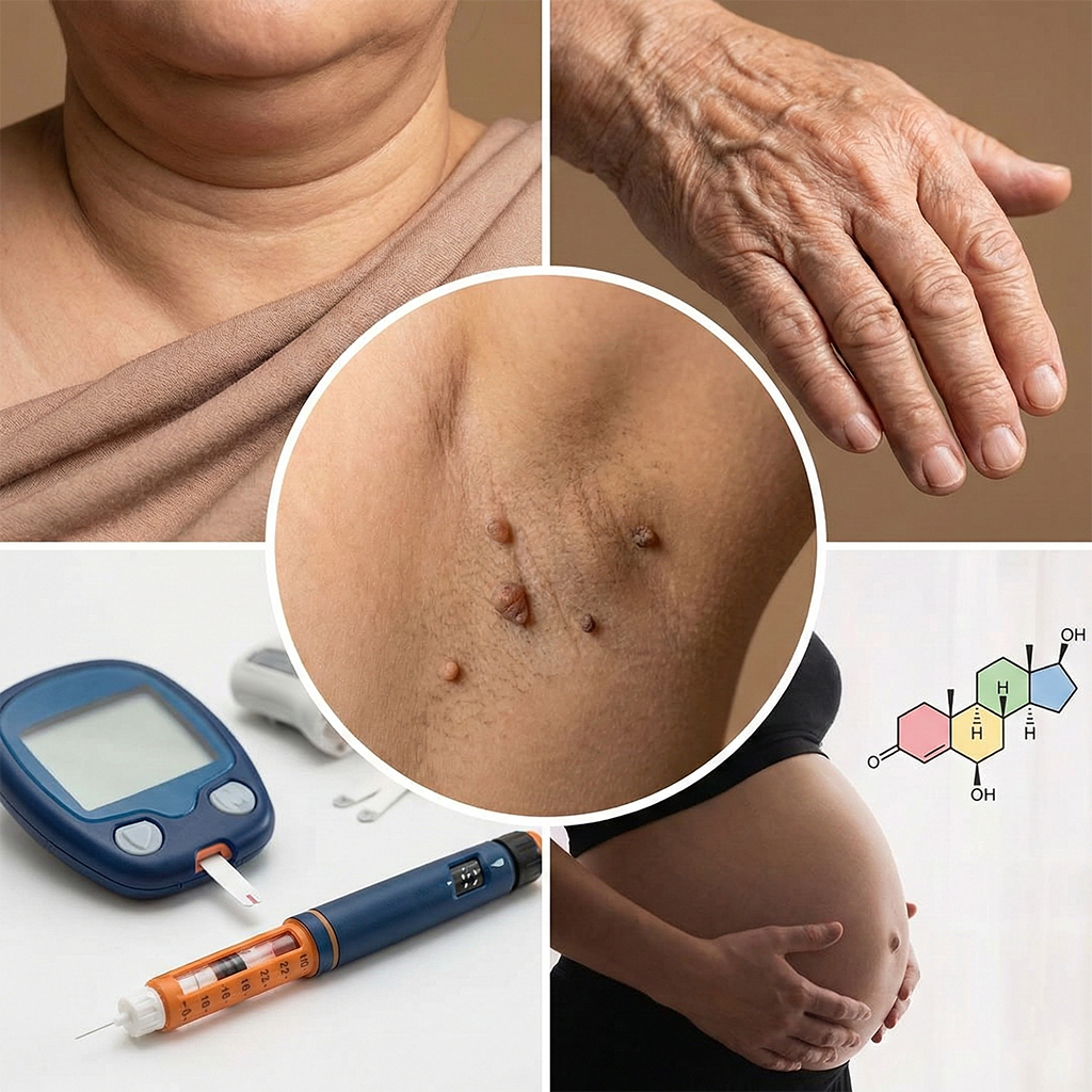체중이 증가하면 목, 겨드랑이 등 피부가 접히는 부위가 늘어나고, 지속적인 마찰이 쥐젖 발생을 촉진합니다.