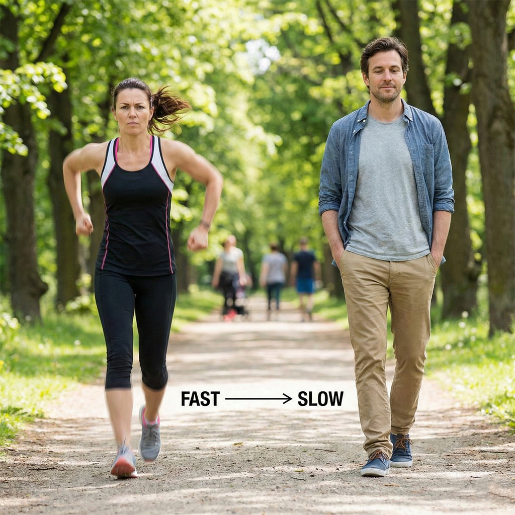 인터벌 걷기(IW)란, 단순히 일정한 속도로 걷는 것이 아니라 '빠르게 걷기'와 '느리게 걷기'를 의도적으로 번갈아 반복하는 운동법입니다.