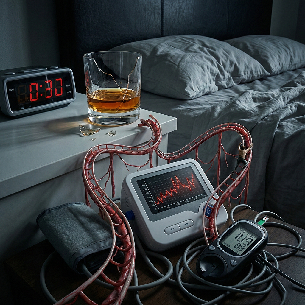 알코올이 분해되면서 아세트알데하이드와 같은 대사산물이 생성되면 오히려 각성 효과가 나타나, 다음 날 극심한 피로감과 혈당 관리의 어려움으로 이어집니다.