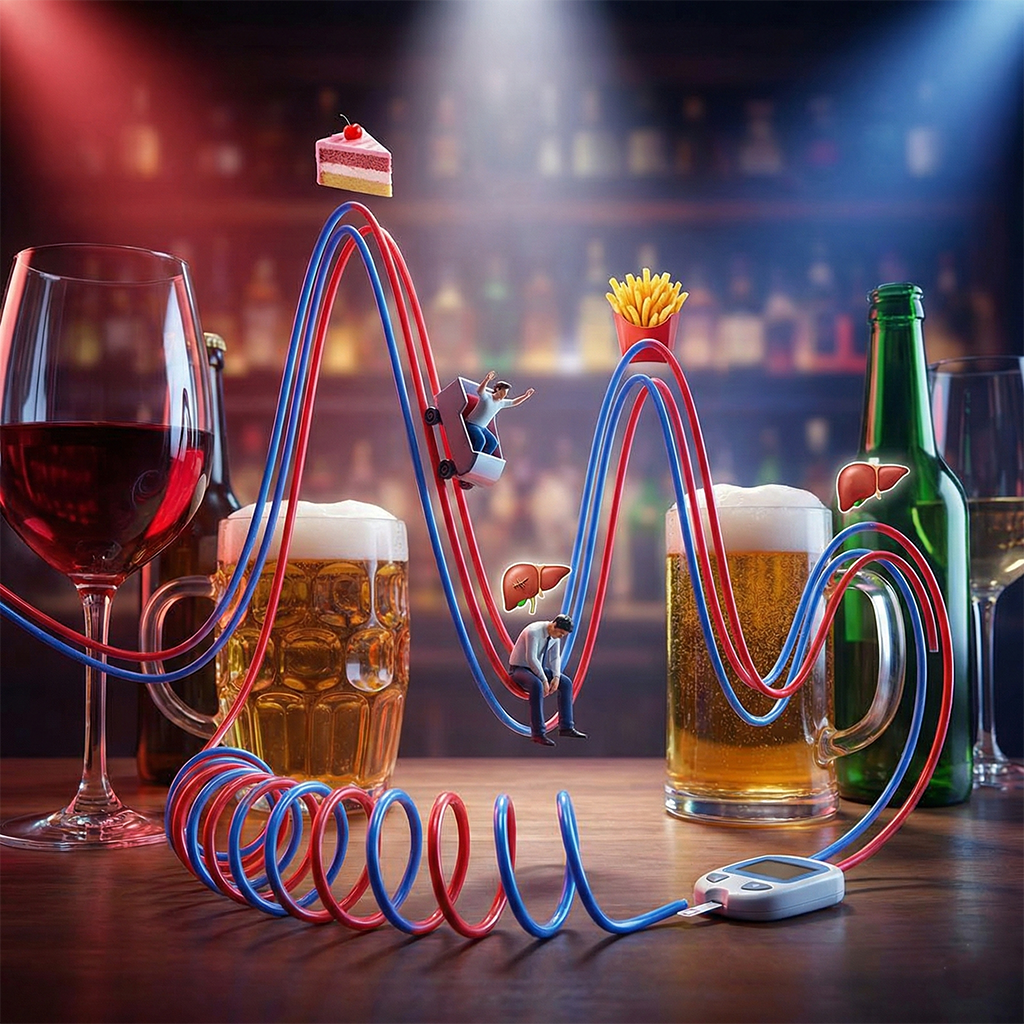 많은 당뇨 환자들이 알코올의 높은 칼로리 때문에 음주가 무조건 고혈당을 유발할 것이라고 생각하지만, 실상은 저혈당과 고혈당을 모두 일으킬 수 있는 '혈당 롤러코스터'의 주범입니다.