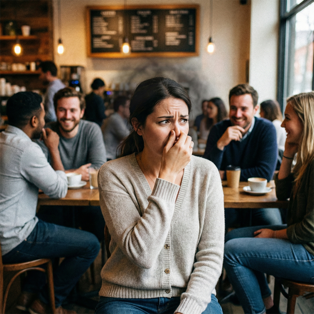 이는 타인의 사소한 행동(코를 만지거나 기침하는 등)을 자신의 냄새 탓으로 오해하는 강박적 사고로, 내과적 검진에서 이상이 없다면 정신건강의학과적 상담 및 인지 행동 치료가 필요할 수 있습니다.