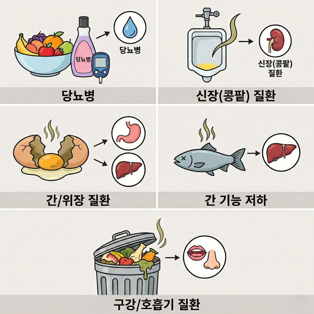④ 생선 비린내 → '간 기능 저하' 신호