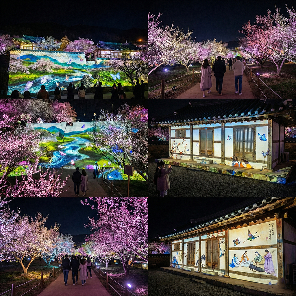 - 주요 특징: 국내 대표 미디어아트 작가들이 참여한 조명 연출로, 해가 진 후에도 빛나는 매화의 아름다움을 만끽할 수 있는 야간 개장.