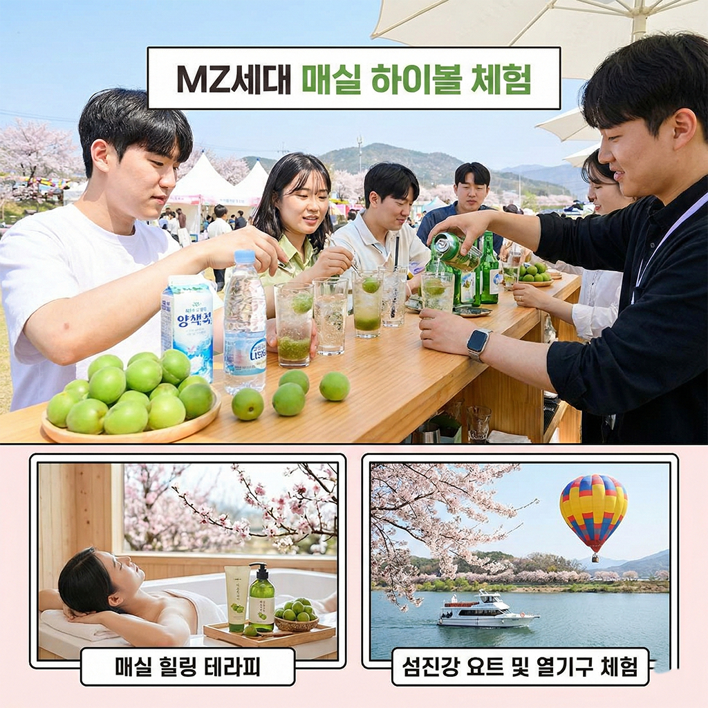 MZ세대에게 선풍적인 인기를 끌었던 '매실 하이볼' 만들기 체험과 매실을 활용한 힐링 테라피, 그리고 섬진강의 풍경을 하늘과 강 위에서 즐기는 요트 및 열기구 체험이 준비됩니다.