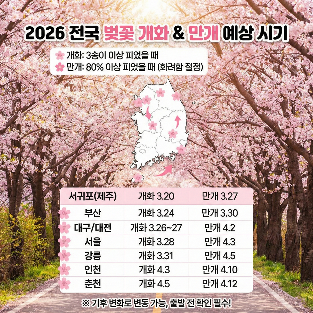 매년 이맘때면 가장 기다려지는 소식, 바로 벚꽃 개화 시기일 텐데요. "올해 벚꽃은 언제 필까?", "어디로 벚꽃 여행을 떠나야 할까?" 고민하는 분들을 위해 기상청의 최신 기후 전망과 빅데이터 분석을 총망라한 2026년 벚꽃 종합 가이드를 준비했습니다.