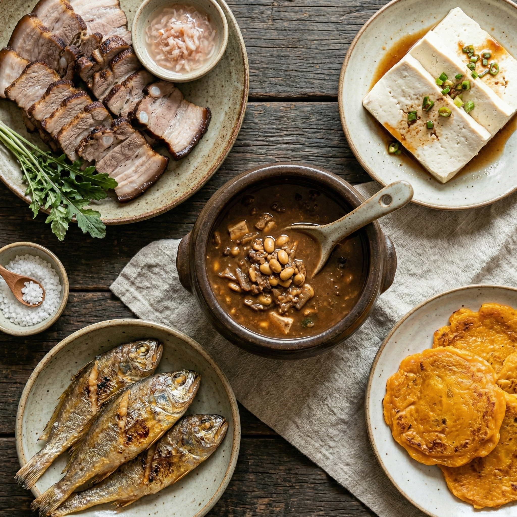 쫄깃한 식감의 지리산 흑돼지 수육, 고소하고 밀도 높은 손두부, 짭짤하게 잘 구워낸 조기구이, 달콤한 호박전과 깊고 진한 청국장까지, 어느 것 하나 빠지지 않는 알찬 구성을 자랑합니다.