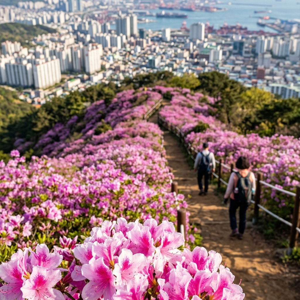 등산로보다는 넓고 평탄한 임도가 잘 조성되어 있어, 힘든 등산이 아닌 공원을 산책하는 기분으로 편안하게 즐길 수 있으며, 부산 시내를 조망하며 걷는 철쭉길은 색다른 매력을 선사합니다.