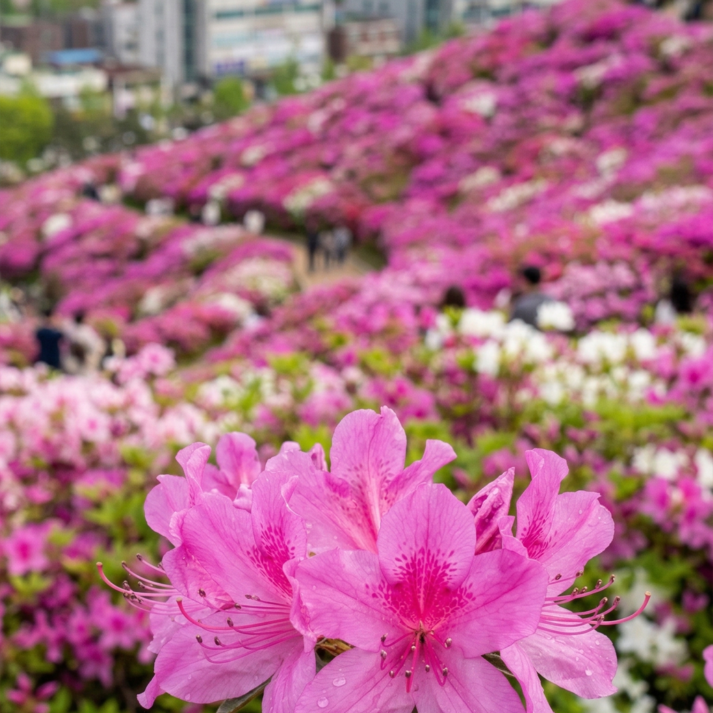 수도권에서 가장 쉽고 편안하게 화려한 철쭉 군락을 만날 수 있는 곳이 바로 군포철쭉축제입니다. 도심 속에 자리한 거대한 철쭉 동산은 매년 봄 수많은 상춘객의 발길을 이끄는 대표적인 명소입니다.