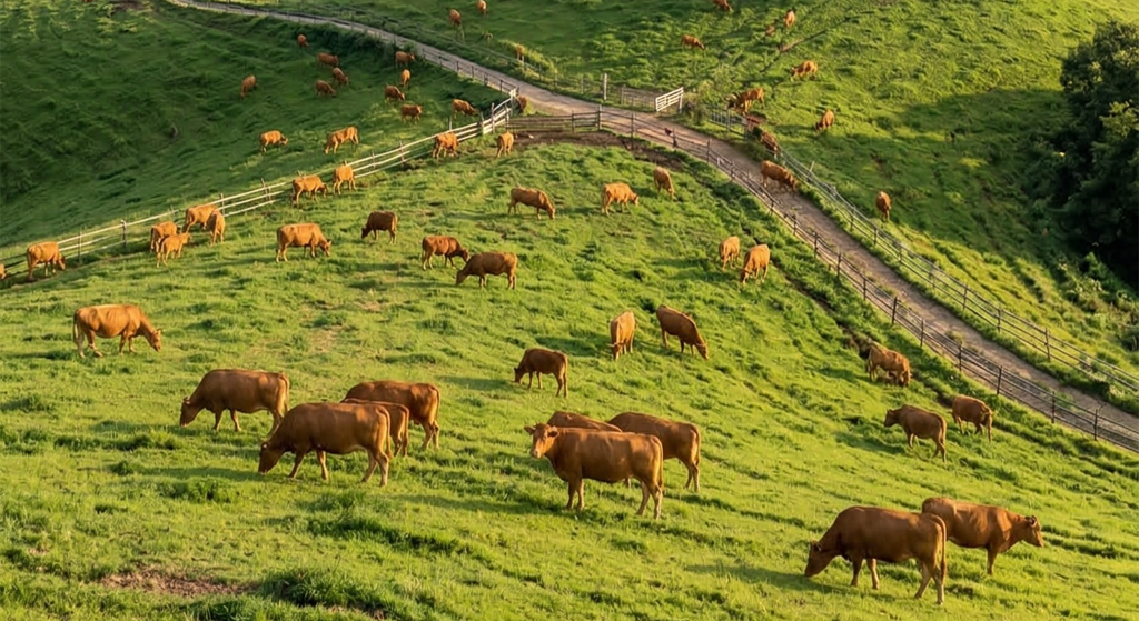 구릉지에 소를 방목하는 이국적인 풍경을 감상하며 약 40분~1시간 코스의 웰빙 산책로를 걸을 수 있습니다.