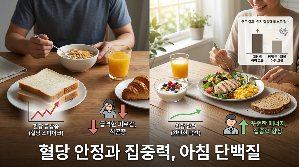 안정적인 혈당은 지방 축적을 막을 뿐만 아니라, 오전 내내 꾸준한 에너지를 공급하여 업무 및 학업 집중력을 높이는 데도 긍정적인 영향을 미칩니다.