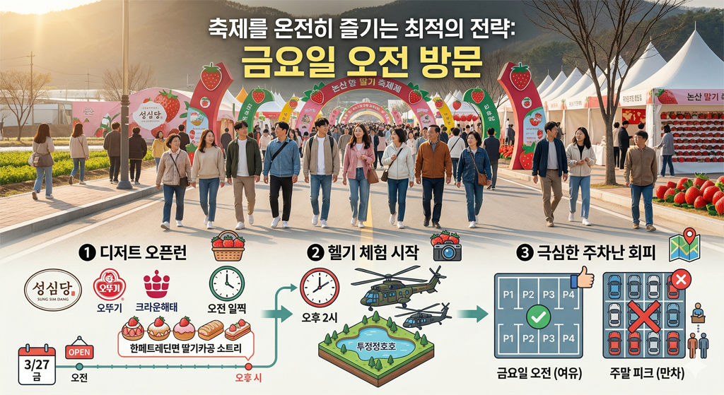 2026 논산딸기축제 방문을 계획하신다면, 본 가이드를 참고하시어 남들보다 한 발 앞서 더욱 풍성하고 만족스러운 여행을 즐기시길 바랍니다.