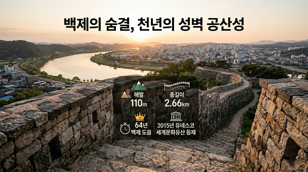 2015년 유네스코 세계문화유산 '백제역사유적지구'의 핵심 유적으로 등재된 이곳은, 백제 문주왕이 한성에서 웅진(현재의 공주)으로 천도한 후 약 64년간 백제의 도읍이었던 웅진성의 중심 방어 시설이었습니다.