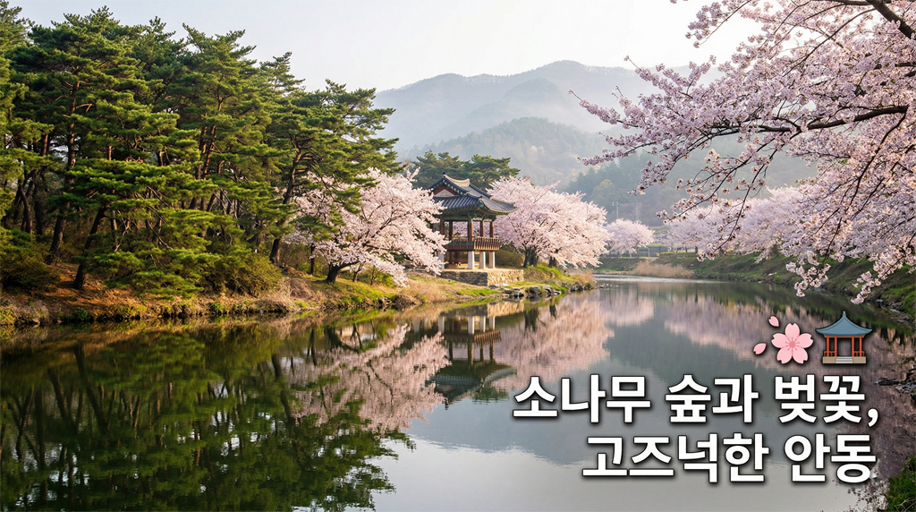 안동은 문화유산의 도시답게 벚꽃 역시 고즈넉한 풍경 속에서 감상할 수 있습니다. 임하면에 위치한 백운정과 개호송숲 일원은 자연과 전통이 어우러진 한 폭의 수묵화 같은 풍경을 제공합니다.
